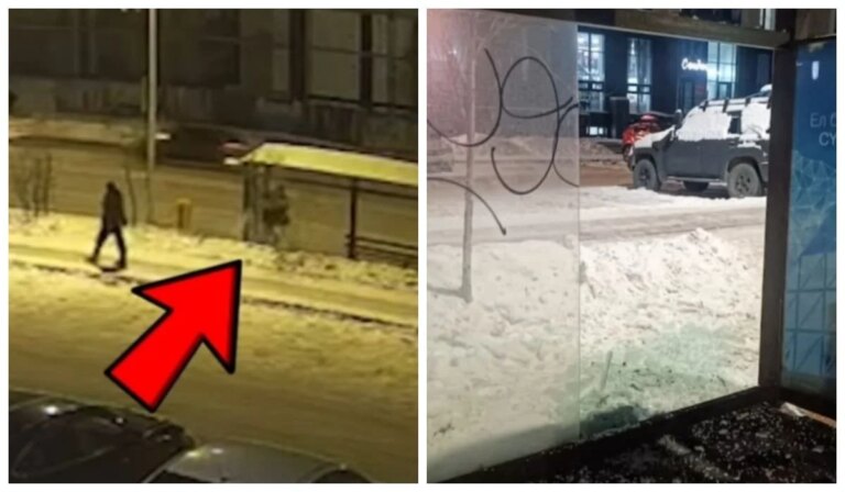 Вечером неизвестный мужчина разбил стеклянную конструкцию автобусной остановки, после чего скрылся с места происшествия.